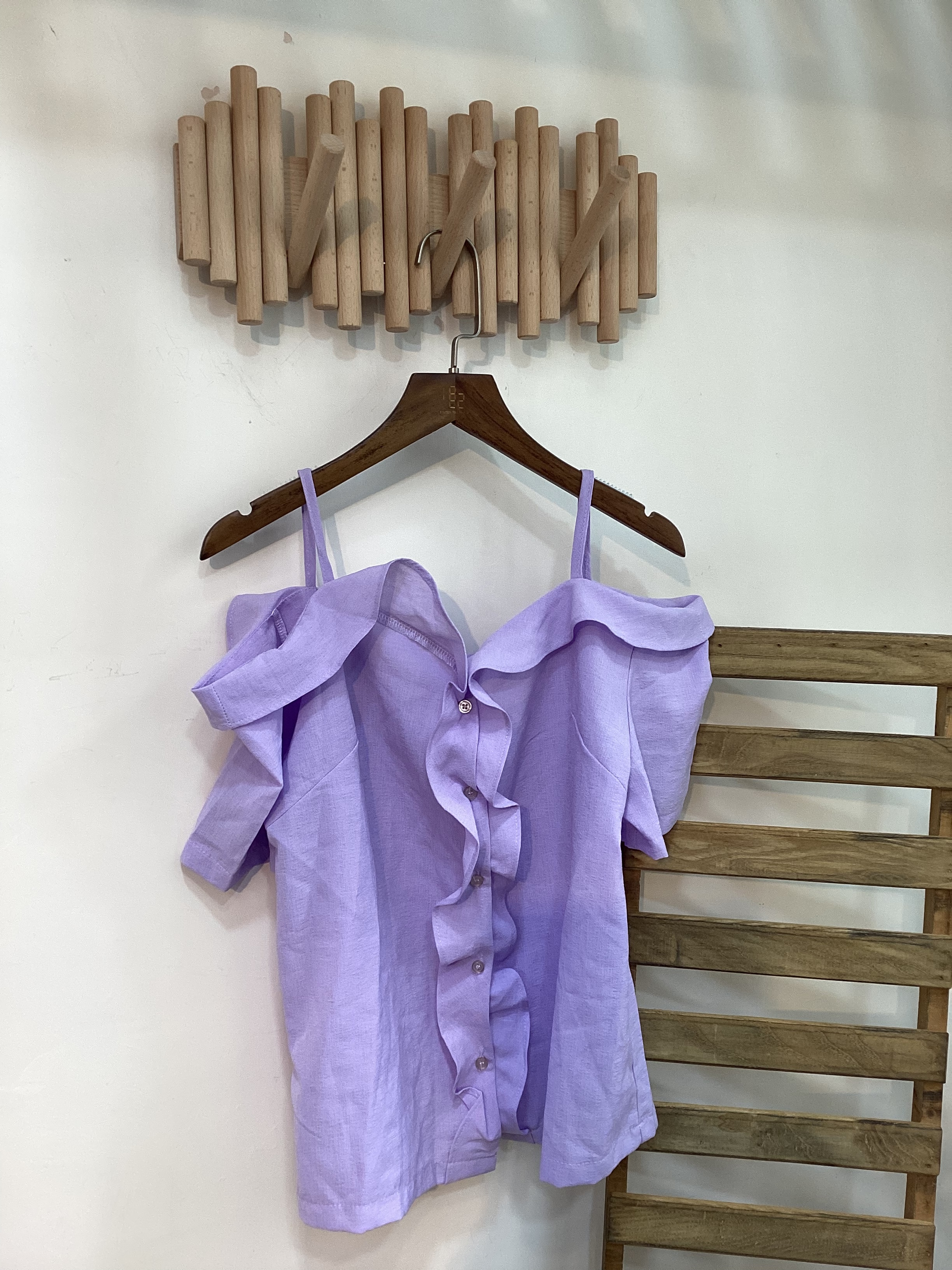 女神紫露肩吊帶TOP
