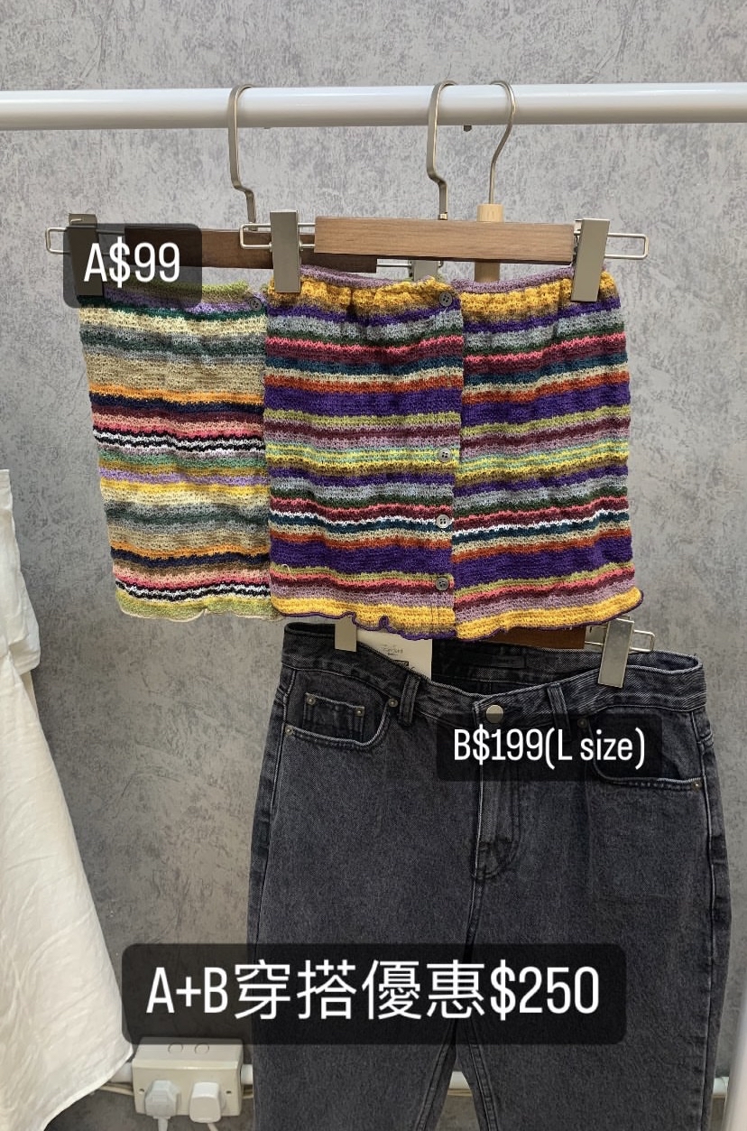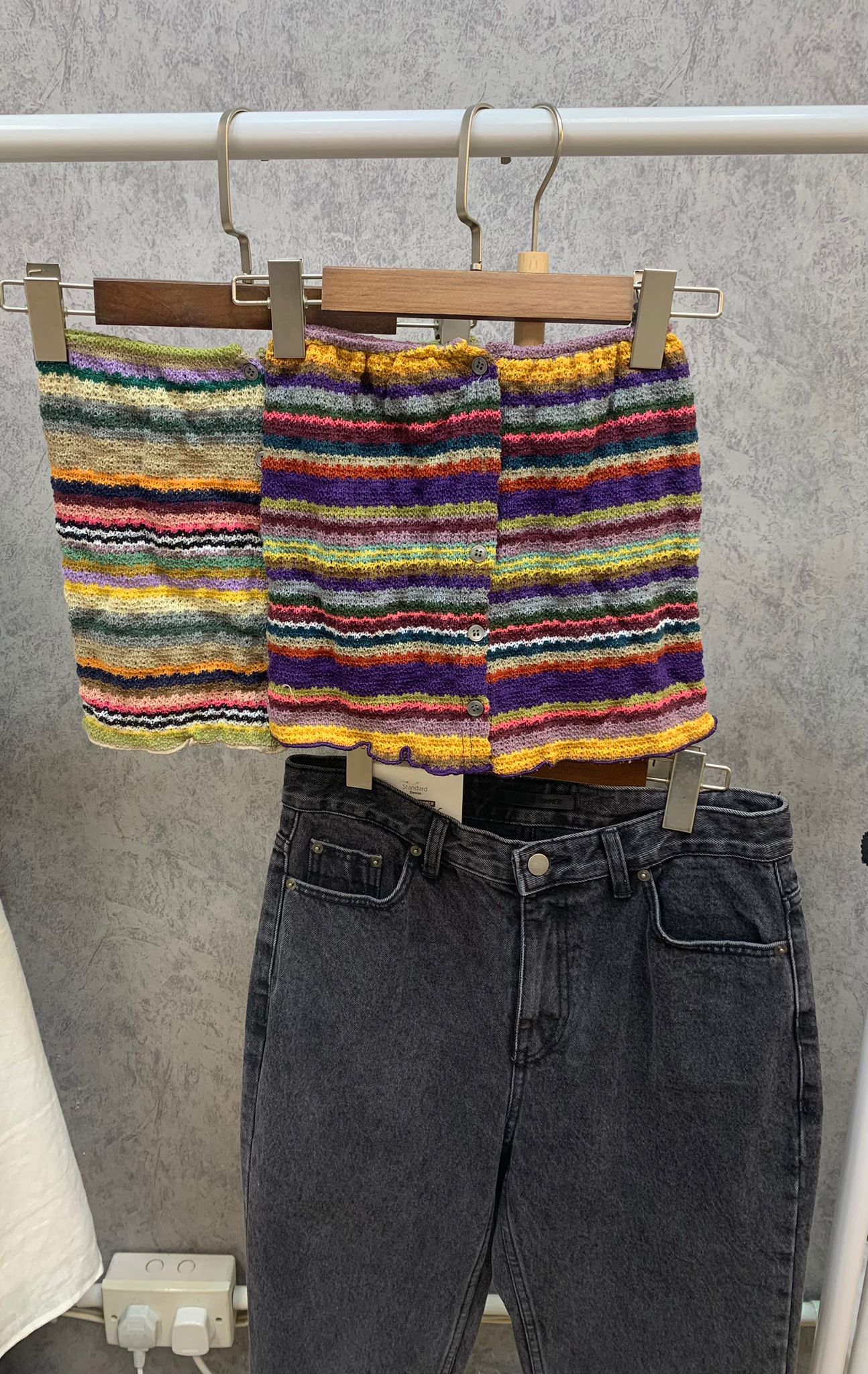 彩虹條紋針織短版上衣+黑色牛仔長褲