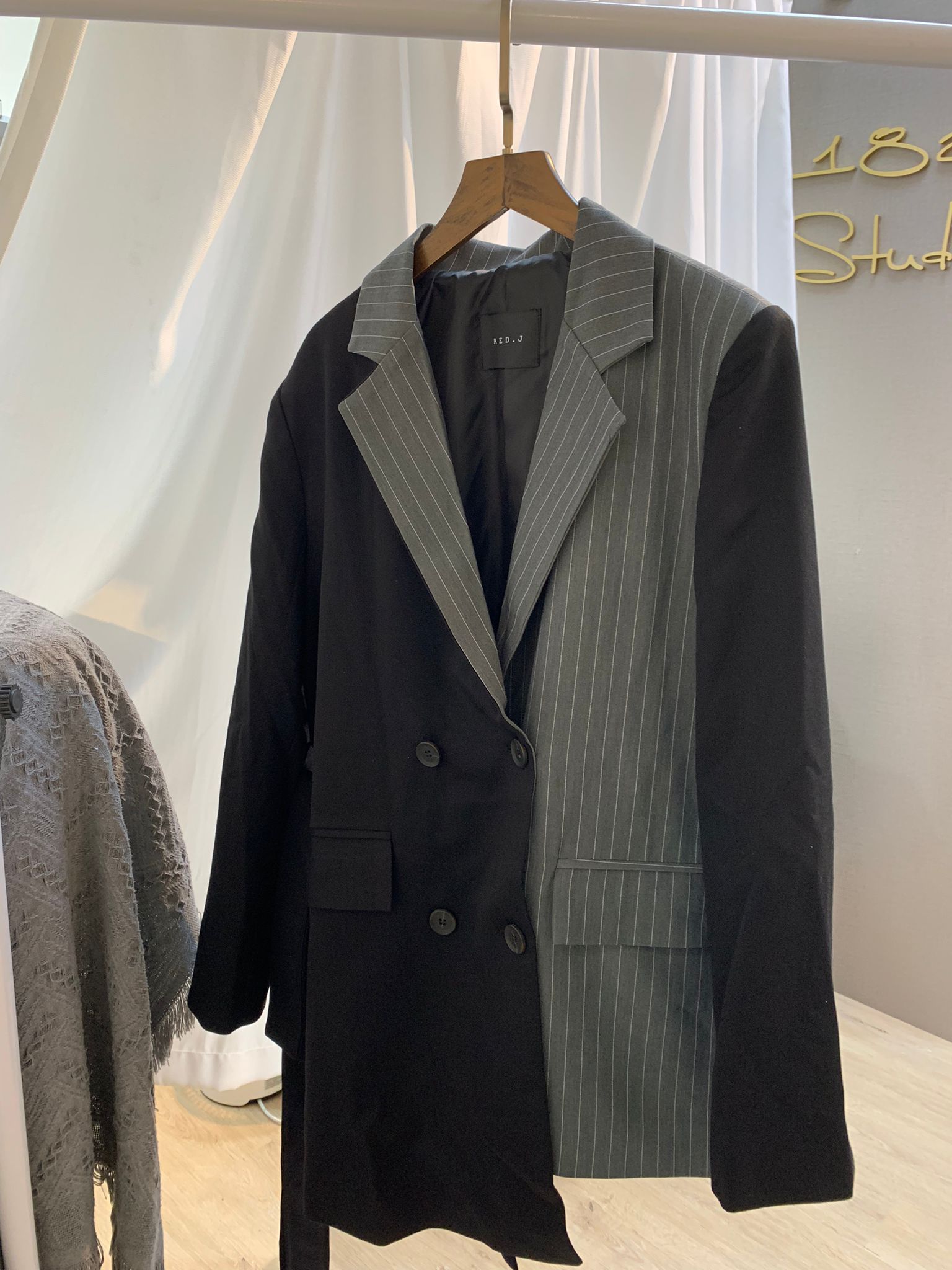 這款撞色拼接條紋西裝外套設計獨特,將經典的西裝版型與現代的設計元素巧妙結合,展現出與眾不同的時尚品味。外套的一側採用純黑色面料,簡潔大方,另一側則採用灰色條紋面料,經典耐看,兩者形成鮮明對比,視覺衝擊力強烈。雙排扣的設計更增添了幾分復古氣息,無論是敞開穿著還是系上鈕扣,都能展現不同的風格。 這款西裝外套的剪裁立體有型,能夠很好地修飾身形,凸顯女性的優雅氣質。面料質感舒適,穿著體驗極佳。無論是搭配休閒褲還是裙裝,都能輕鬆打造出時尚感十足的造型。適合追求個性、不落俗套的時尚女性。 主要特點: * 撞色拼接設計,時尚個性 * 經典條紋元素,復古耐看 * 雙排扣設計,更顯優雅 * 立體剪裁,修飾身形 * 優質面料,舒適透氣 * 百搭款式,輕鬆打造多種造型 * 適合追求個性與時尚的女性