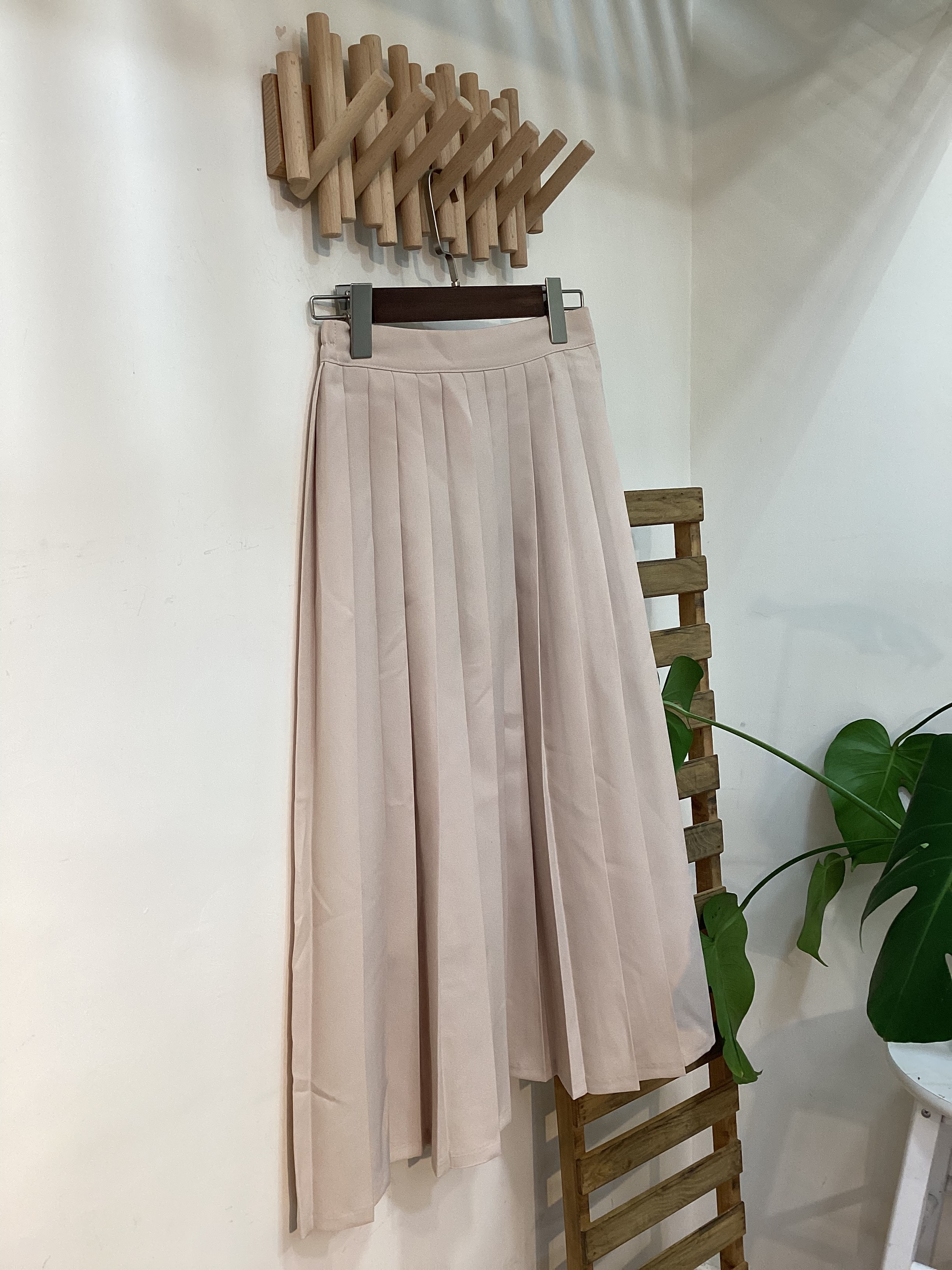 百搭裸色百褶裙
