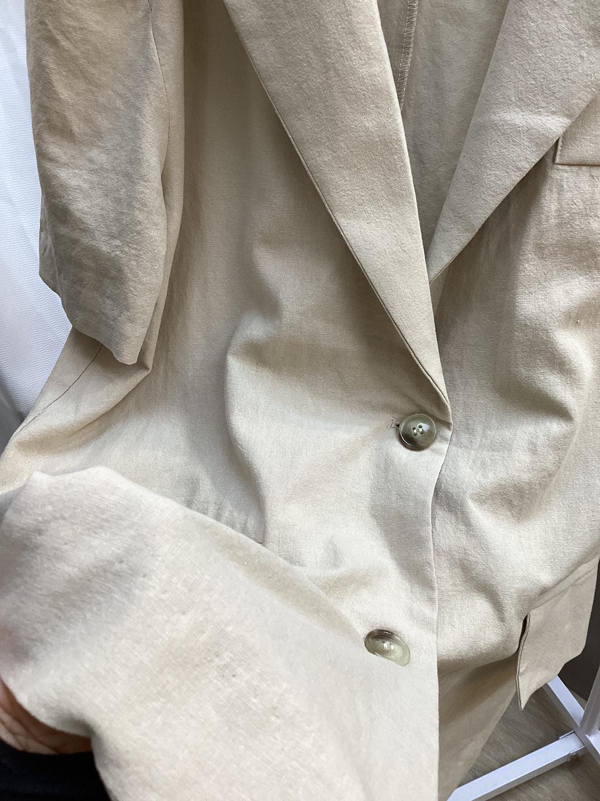 產品特點: * 高品質亞麻面料,柔軟舒適,透氣性佳 * 寬鬆版型,遮肉顯瘦,不挑身材 * 經典西裝領和單排扣設計 * 衣身設有兩個實用口袋 * 適合春夏季節穿着 尺寸:肩寬53cm衣長67cm袖長27cm