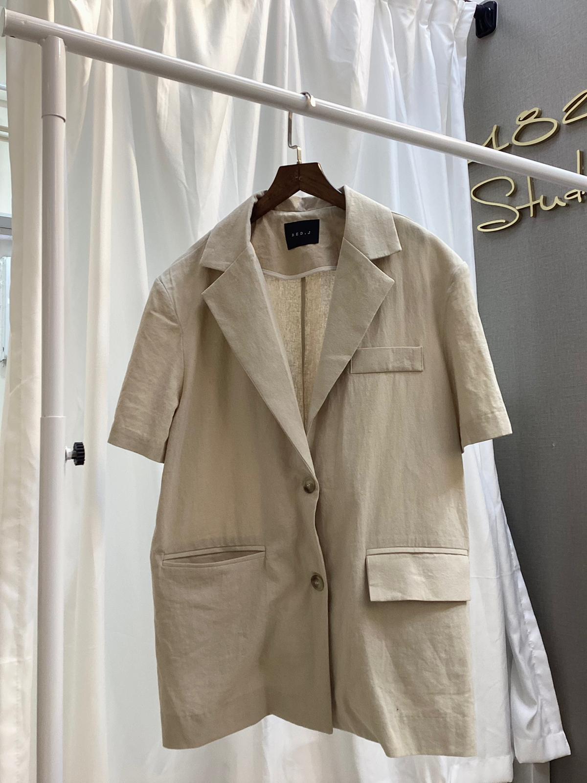 簡約亞麻短袖西裝外套-百搭時尚顯瘦