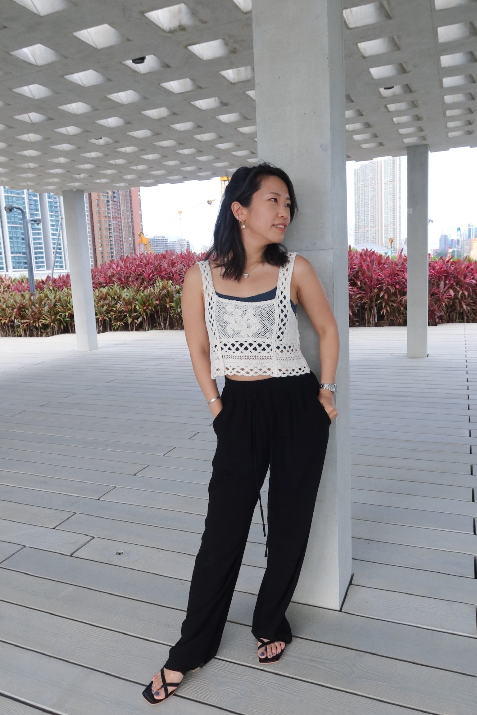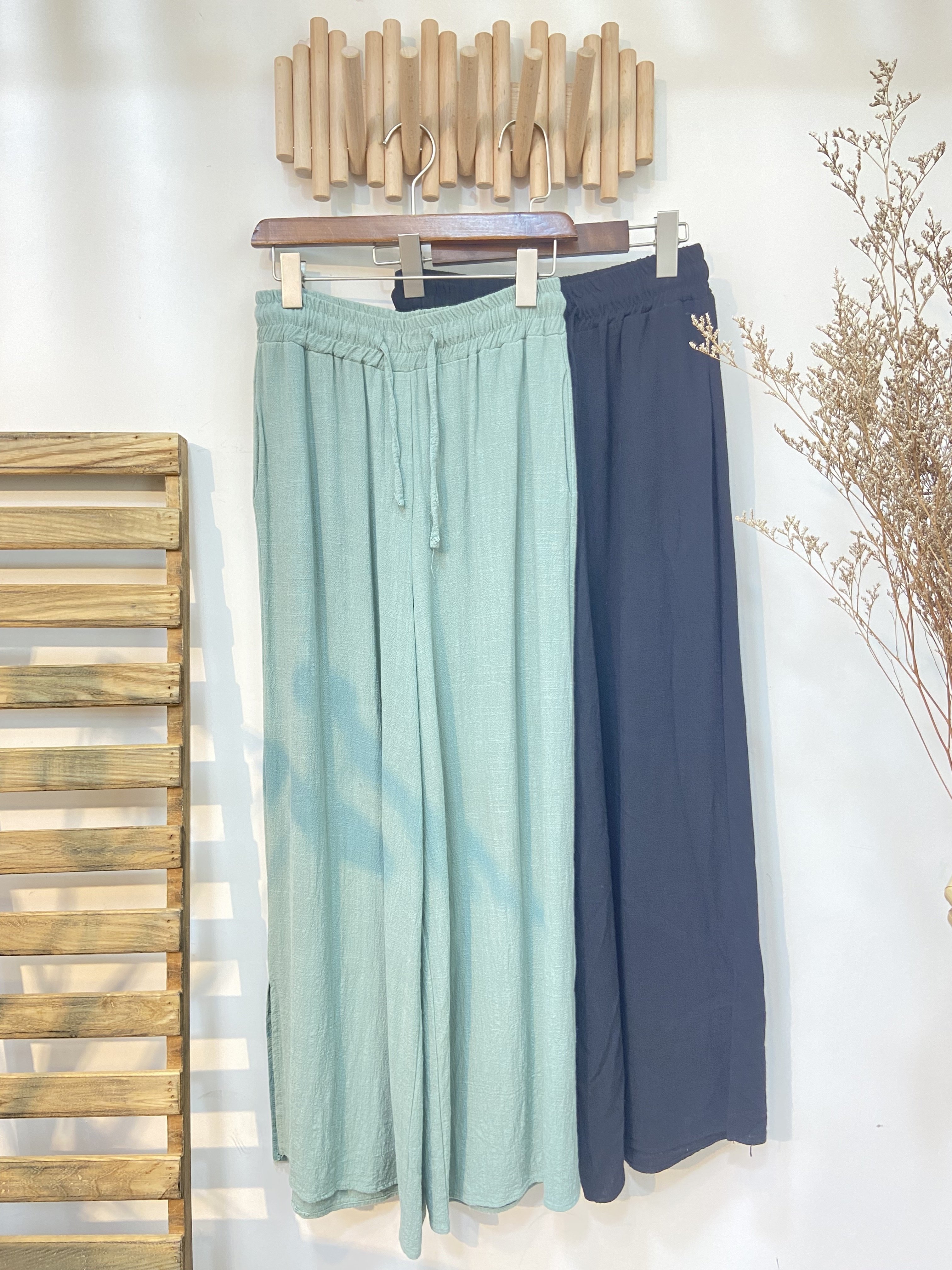 麻質橡筋腰長褲